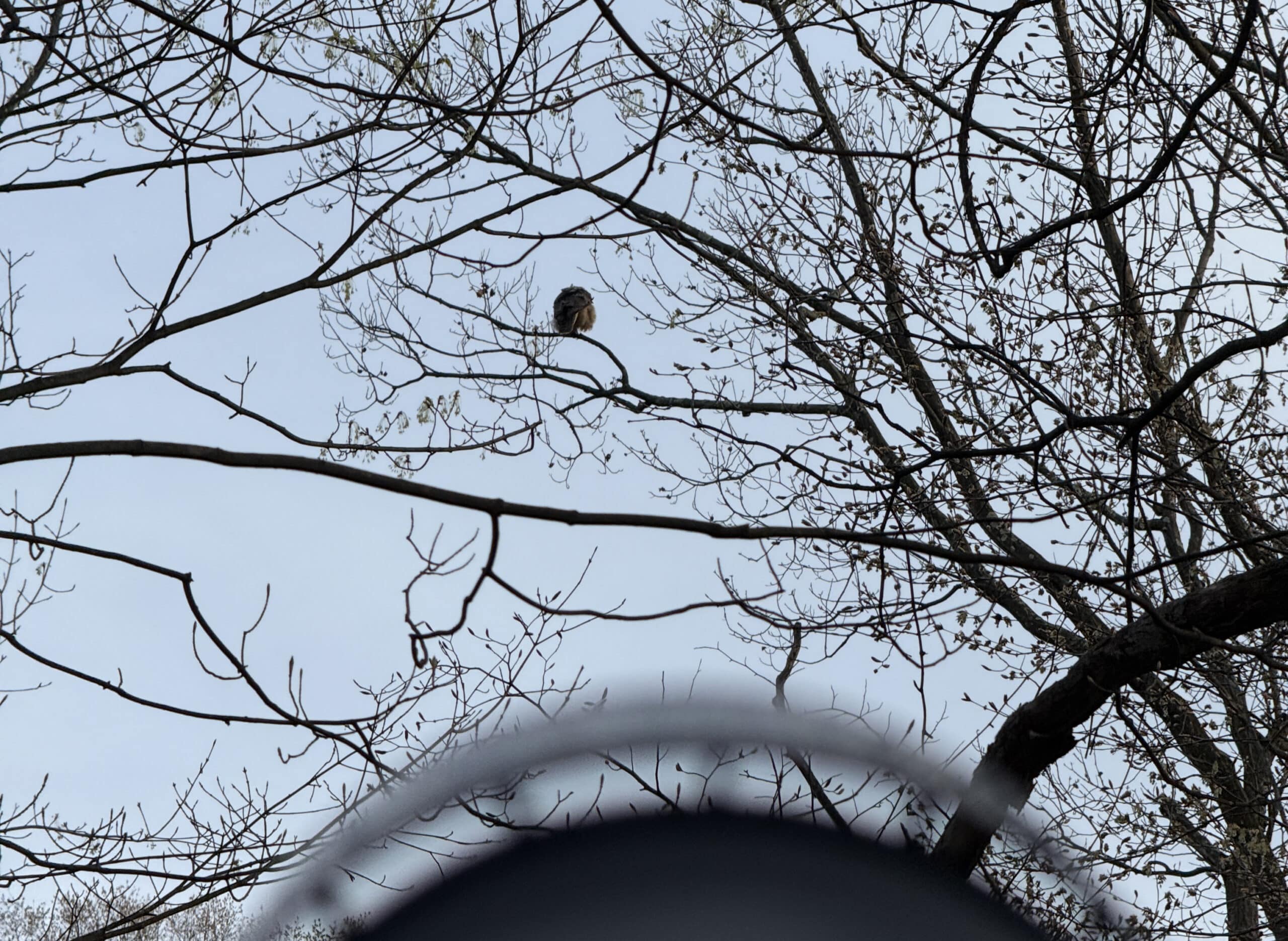 Students on a Nature Photography Walk in Frick Park in Pittsburgh, PA point at a bird they're trying to photograph